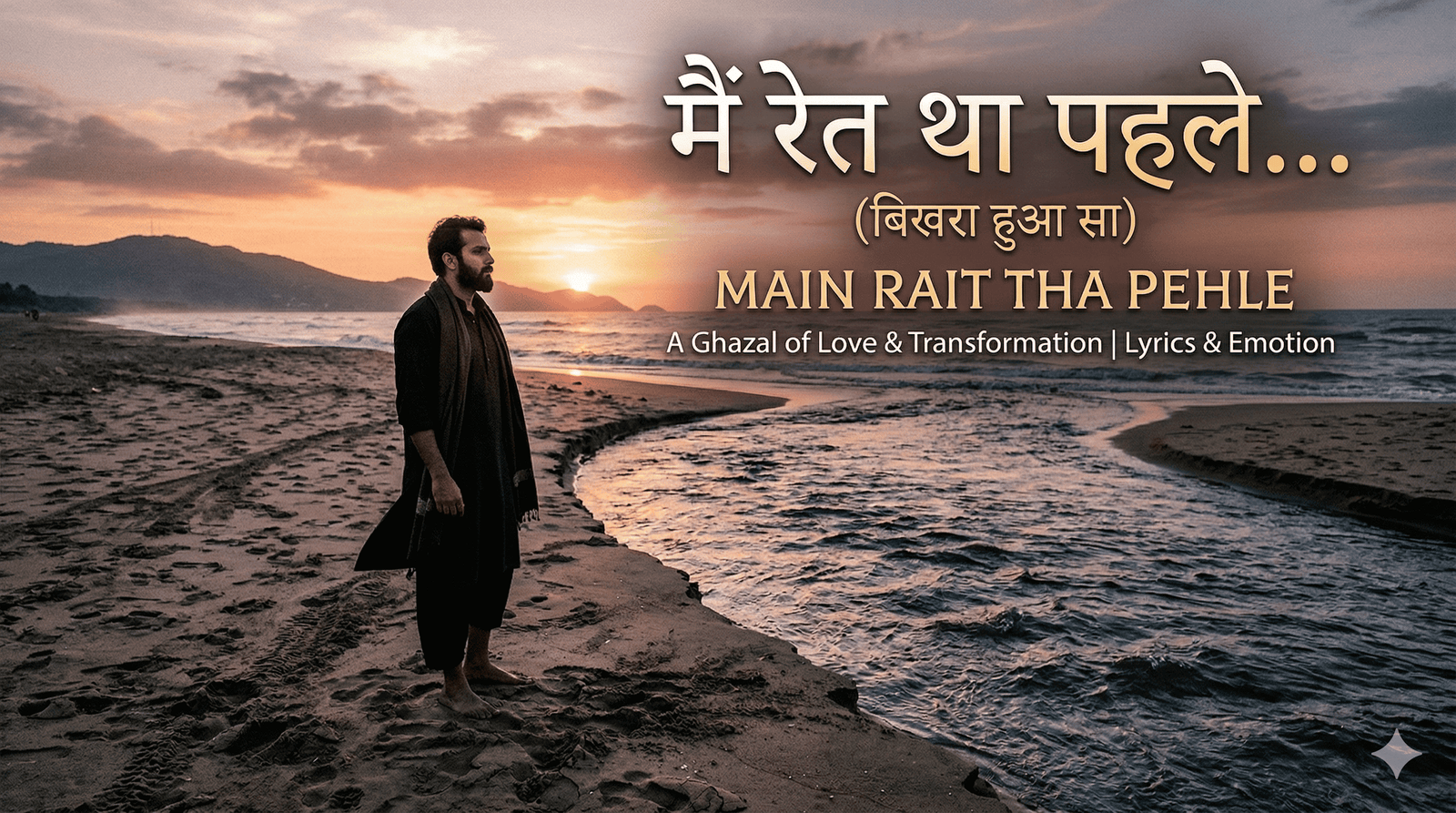 Read the full lyrics of the soulful Ghazal "Main Rait Tha Pehle, Bikhra Hua Sa". A beautiful composition about love, transformation, and finding a home in someone's heart. Available in Hindi and Hinglish. If you are looking for a Ghazal that perfectly captures the transformative power of love, "Main Rait Tha Pehle, Bikhra Hua Sa" is a masterpiece of emotions. This poetry beautifully describes...